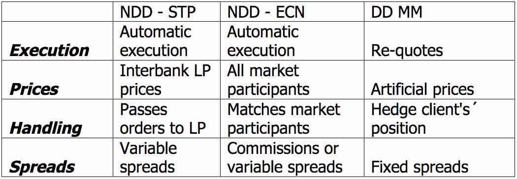 Forex brokers are classified into either dealing desks (DD) or no dealing desks (NDD)